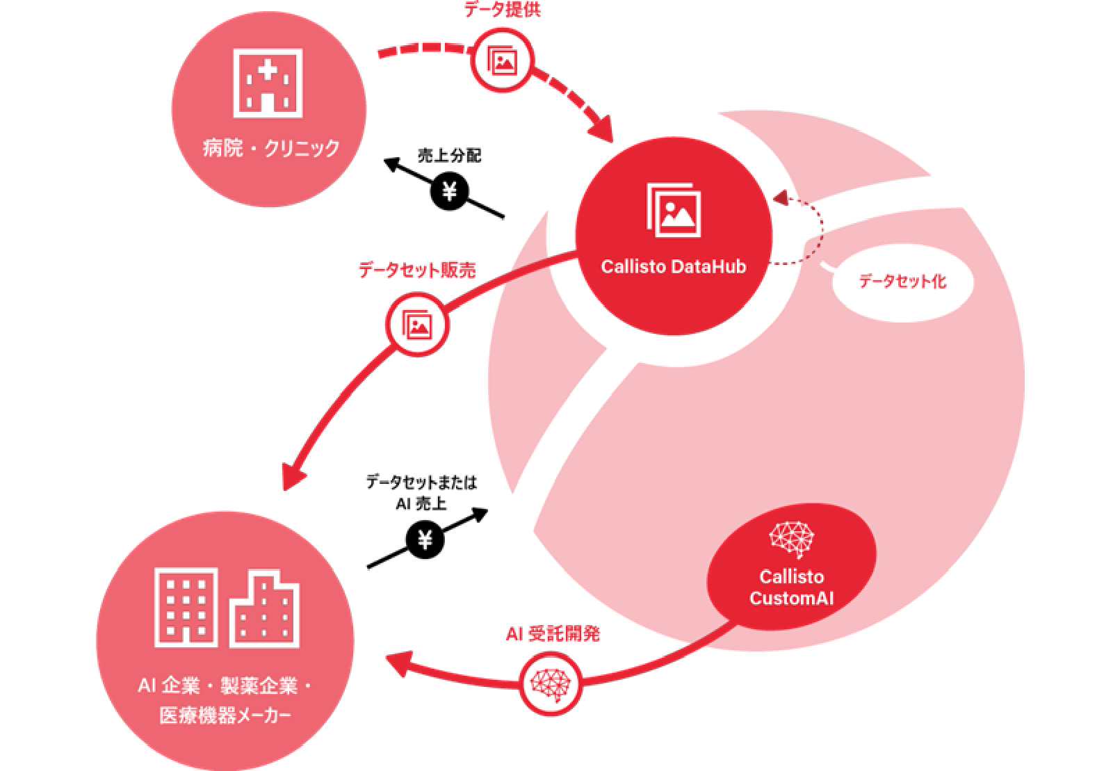 東大発スタートアップCallistoは、医療AI/創薬AIの研究開発にすぐ使える、多様な正解付き医用画像データセット(放射線画像・病理画像・臨床情報・分子診断結果)を集約し販売するプラットフォームを医療施設と共に創っています。